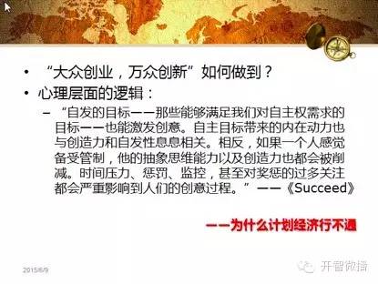 直到最近读到有关于动机心理学的研究,我才找到理论的支持。奖惩机制只能促进机械的完成任务,但是对于创新,创新主体的自我感才是最关键的。创新主体必须感觉到这是我的想法,我要把它用我选择的方式贯彻出来。创新者必须是资源驾驭者,而不是被驾驭者。这是计划经济失败的重要原因。