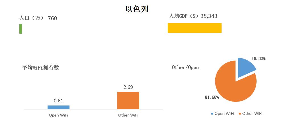 真正的中东第一强国,WiFi多个数据密度好于阿拉伯国家,用户使用情况更是接近欧美水平,“最好卖广告的国家之一”。就是Open WiFi有点多还不需要验证,幸福指数很高的国家。