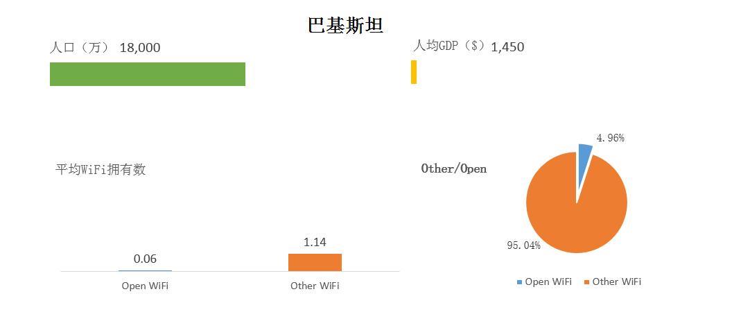 WeShare 在160多个国家和地区,其APP以及SDK拥有过亿用户和2亿以上的WiFi热点数据,通过对其中比较典型的美,英,法,德,西,加,墨,巴,阿,土,沙,澳,印,越等43个国家的数据筛选后整理出了此份报告。报告将从国家人口、平均GDP、Other WiFi和Open WiFi比值,平均持有WiFi数这几个数据维度进行解析,从中可以看到不同国家和地区WiFi的发展现状。