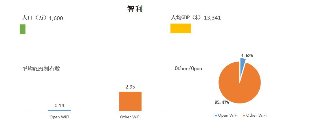 智利,最典型的南美国家,WeShare有时候都怀疑南美其他国家似乎有必要列出来,他们的WiFi数据实在太接近了。