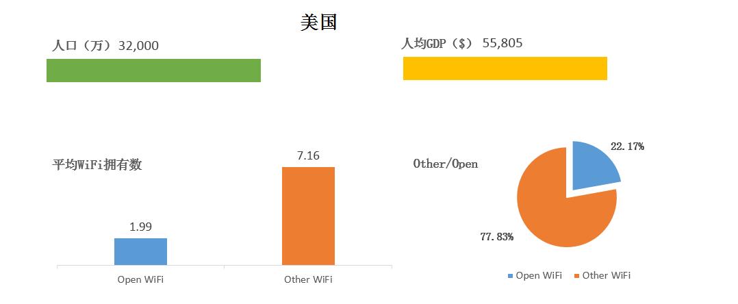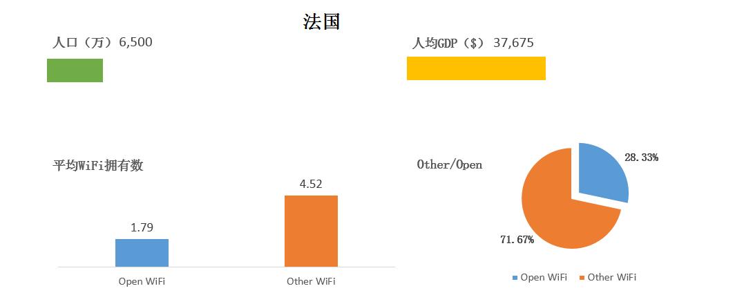 世界冠军闪亮登场!无论从哪个角度说,法国的WiFi水平都是全球最高的,Other/Open比2.53,比美国低40%,是中国的一半,法国人民是世界上最幸福的,随时随地有WiFi用,他们还特有钱。