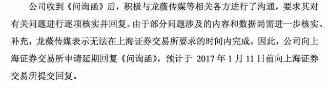 万家文化墨迹了好几天,终于给上交所憋出一封回信,不再提“2016年整不完重组就不整了”这个任性的让交易所无法接受的理由了,说了一个行业整体存在风险的理由,一记太极,把力道揉进虚空中。