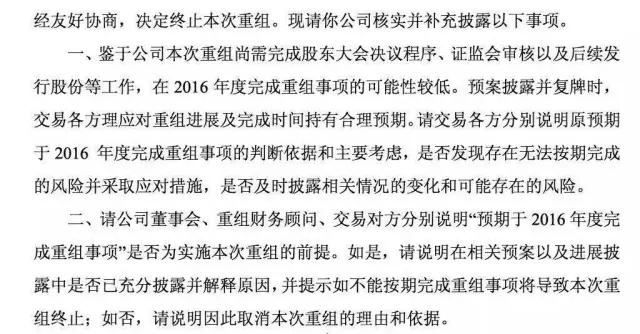上交所看到这个理由就很不乐意了,你停牌又复牌的折腾了大半年,现在说2016年整不完了就不整了,这叫什么理由?你们当时要整重组的时候,说过一定要2016整完吗?你们都是处女座的交情,还是要去冲浪别的风口啊?