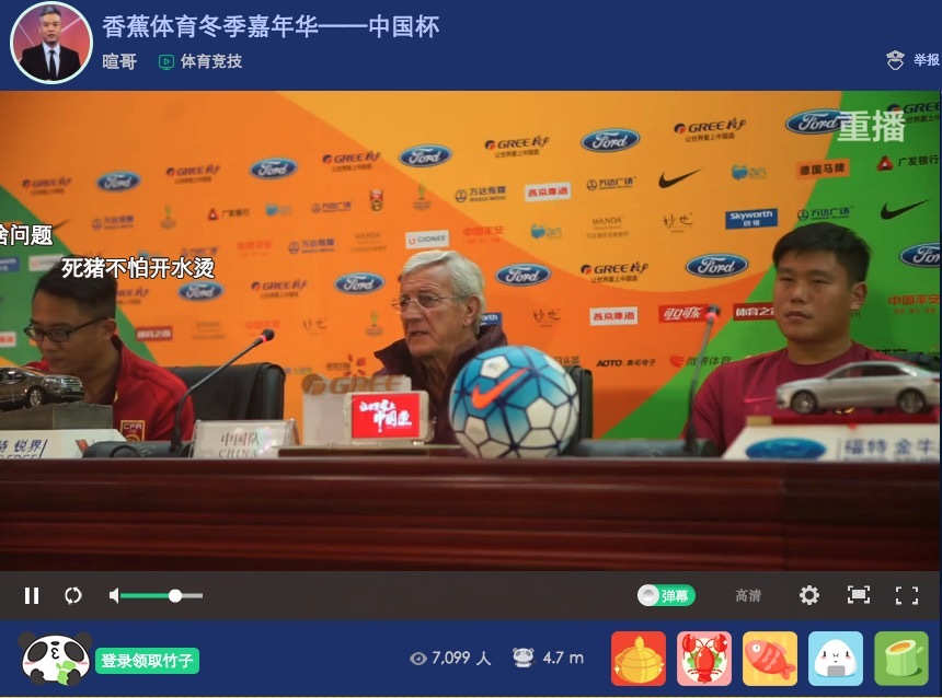 王思聪的香蕉体育正在直播王健林的中国杯,体育内容会成为熊猫TV突围的关键点吗?