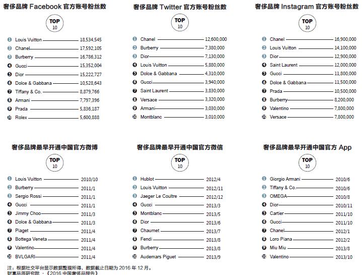 2016年是全球奢侈品数字化迅速发展的一年,很多奢侈品牌在这一年实质性触电,并且在更多领域特别是E-service领域进行了大胆尝试。奢侈品官网的作用正在被削弱,Facebook、Instagram、微信、微博等第三方应用正在比官网发挥更大作用,比官网拥有更大用户量。