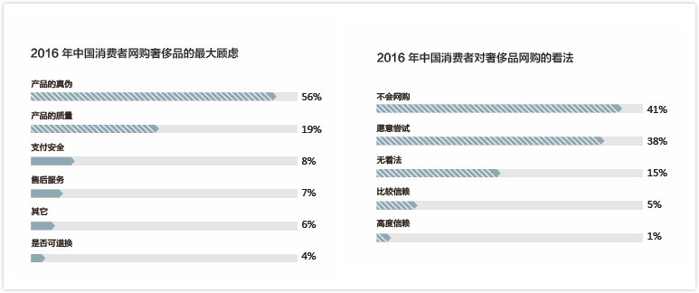 中国富豪总体对网购奢侈品兴趣不高,但服装、服饰和皮具都是中国富豪热衷于在网上购买的奢侈品品类。此外,尽管直接送货上门以及随时可以购物带来的便利让中国富豪有一定意愿网购奢侈品,但他们仍然存在买到假货的担忧。假货已经成为网购奢侈品最大障碍。财富品质研究院调研发现,线上销售的奢侈品80% 均为假货,有的平台假货率高达90% 以上。