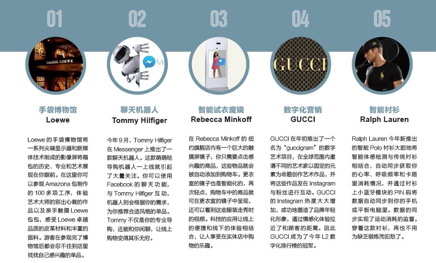 其次,不少奢侈品牌已经将科技元素融入了数字化的传播营销之中,高冷的奢侈品开始玩科技。根据财富品质的研究,2016年十大奢侈品数字化经典案例中,Loewe、Tommy Hilfiger、Rebecca Minkoff、Ralph Lauren、Louis Vuitton等品牌都因为推出智能产品而引爆互联网。