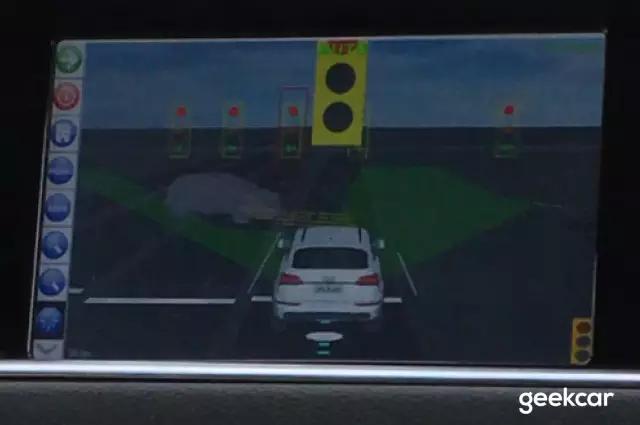 需要特别注意的是,在屏幕的右下角还有一组信号灯的标识,它是来自于德尔福 V2E(Vehicle to Everthing)技术中的 V2I(Vehicle to Infrastructure)分支,即车辆可以通过 DSRC 技术与同样支持 V2I 的交通设施进行互联,让车辆可以提前了解到这些设施所处的位置以及状态(例如交通信号灯是正在亮红灯还是正在亮绿灯)。