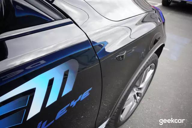 例如隐藏在车身尾杠下和前车灯下面的激光雷达与长距离雷达: