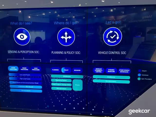 可以看到,Mobileye 的主要角色还是提供了摄像头相关的图像识别、地图定位技术以及图像识别芯片。而在车辆驾驶行为的算法上,Mobileye 只占了 20%,剩余的算法与硬件分别来自德尔福自己以及整合芯片供应商(会是英特尔吗?)。这一点其实也可以验证我们之前在 CES 期间得出的一个结论:Tier 1 在自动驾驶行业当中依然处于一个不可取代的地位。