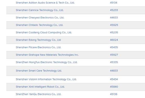 ▼随手截张参会公司名单,有一排“Shenzhen”的身影
