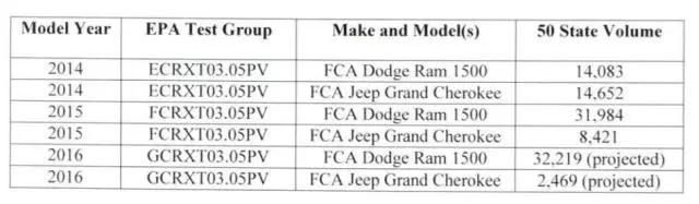 在这份文件中,EPA 方面列出了 FCA 所有存在作弊行为的车辆: