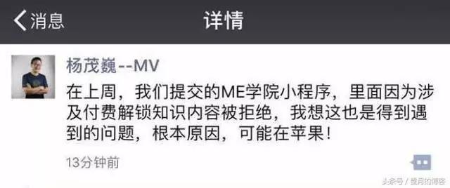 微信在小程序上多次和苹果官方发生了冲突,早前“应用号”被传应苹果要求改为“小程序”,后又在小程序服务品类上有着严格限制,主要原因还是苹果为了守住其年流水400亿美金的业务。