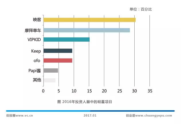 尽管2016年是资本寒冬年,但市场上不乏热点,有着吸引眼球的共享单车大战、直播大战、人工智能的崛起等。调研显示,映客、摩拜单车和VIPKID分别在投资人眼中的2016明星项目中排前三位。