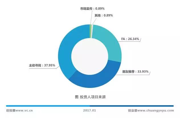 调研显示,37.95%的投资人是主动寻找新项目,33.93%的是通过朋友推荐,26.34%是通过FA推荐,由市场宣传而发现的不到1%。由此可见,投资人发现项目的重要性中,个人>关系>FA,对于初创团队而言,通过公关包装来获得融资的机会似乎不大,创业者应该把更多的精力放在修炼内功上。