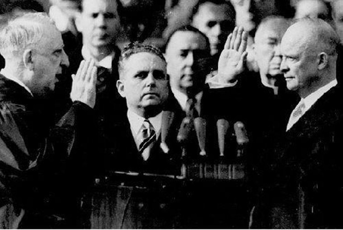 1953 年 1 月 20 日,艾森豪威尔发表就职演说。当年是有史以来第一次,从太平洋沿岸到大西洋沿岸的美国人都有机会通过电视,收看美国第34届总统的就职仪式。艾森豪威尔连任两届总统。