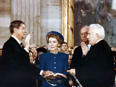 里根称得上美国一位传奇总统,他是当选时年龄最大而且最长寿的总统,1981年入主白宫时已是七旬老人。他也是艾森豪威尔之后,第一位任满两届任期的总统。在两次的就职仪式上,里根都使用同一本他母亲赠送的圣经。