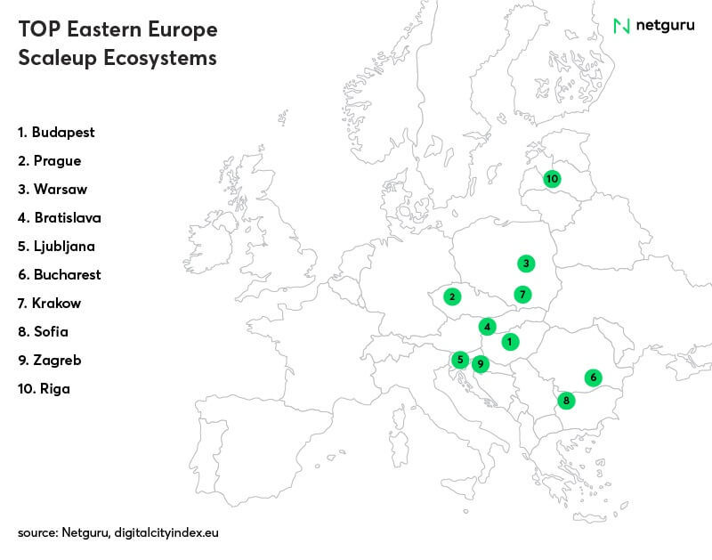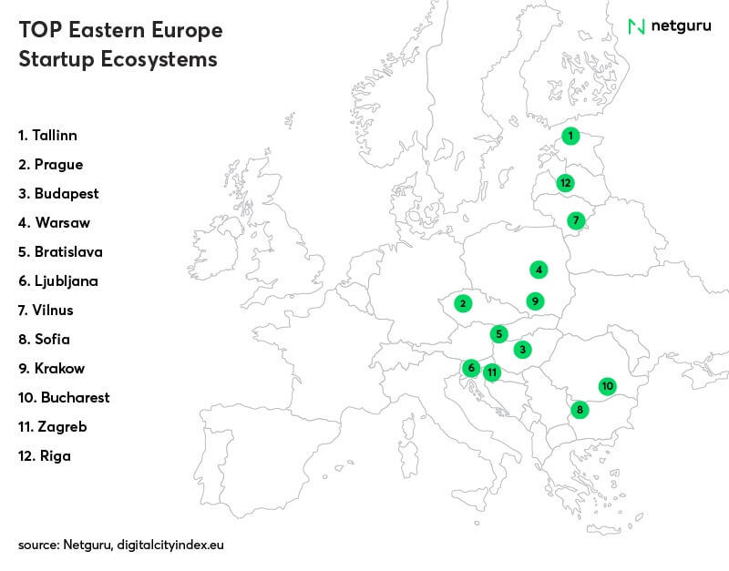 根据欧洲数字城市指数的报告,在欧洲顶尖科技创业中心 50 强中,12 个东欧城市凭借各自优质的创业公司生态系统榜上有名。