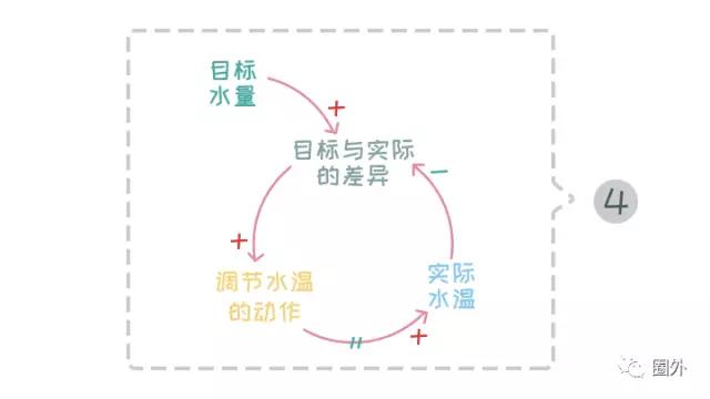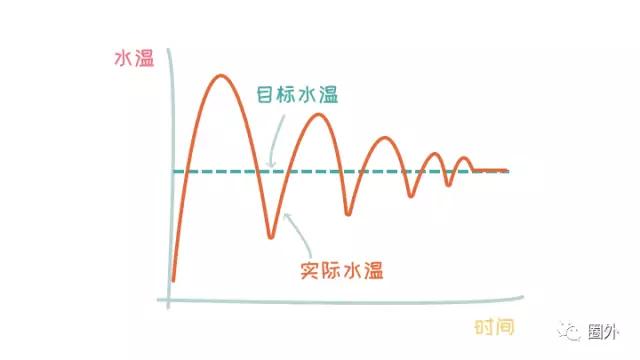 这个循环图的意思是:我们一般先调整到一个位置,运行了一会儿,发现太凉了,就会往“热”的方向再调整一下,然后水温差不多了,但没过多久,发现又太烫了。