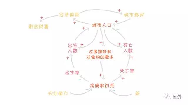 当然,这两个限制也跟一些因素有关,如果有兴趣,可以画出它们背后的系统。但在这里,我们重点讨论人口问题,所以不再延展。
