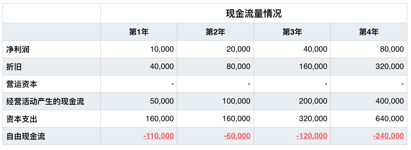 同时,在这个例子里我们能清楚的看到营利和自由现金流的对立,这在实际商业环境中其实时常发生。