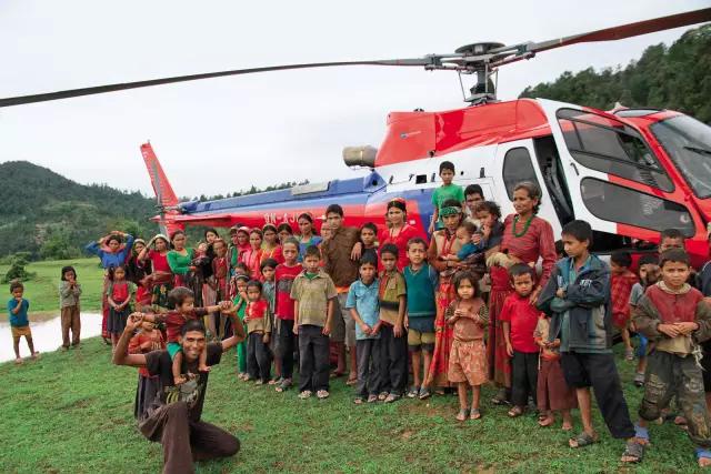 (2010年尼泊尔某项目,直升机勘测引当地村民围观)