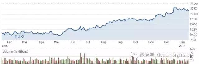 公司主要受益于苹果手机将其iPhone的内存翻倍,带来了DRAM芯片的价格上涨以及更强的闪存芯片需求。整个半导体芯片价格在2016年出现了上涨。