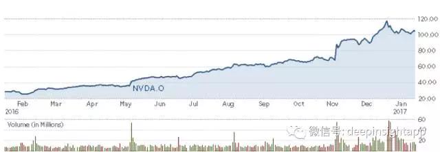关于英伟达,点拾做过许多次分析。2016年绝对是英伟达的老树开花年。我们知道GPU芯片已经完成了对于新一代科技技术的卡位,无论是人工智能,无人驾驶汽车还是更加快速的算法应用,都大量需要GPU的芯片。这也让英伟达在2016年不断超市场预期。是否拥有英伟达,成为了去年能否跑赢市场的最关键因素。