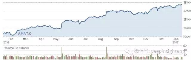 说完了未来,我们再来看看过去,到底2016年涨幅最强的科技股有哪些?2015年的科技股上涨主要受益于代号FANG的科技四天王:Facebook, Amazon, Netflix和Google。他们分别代表着社交应用,电商,视频内容和搜索引擎。而2016年科技股中最耀眼的明星就是半导体。PHLX半导体指数在2016年上涨了41%以上。或许硬件的创新将引领下一次革命。