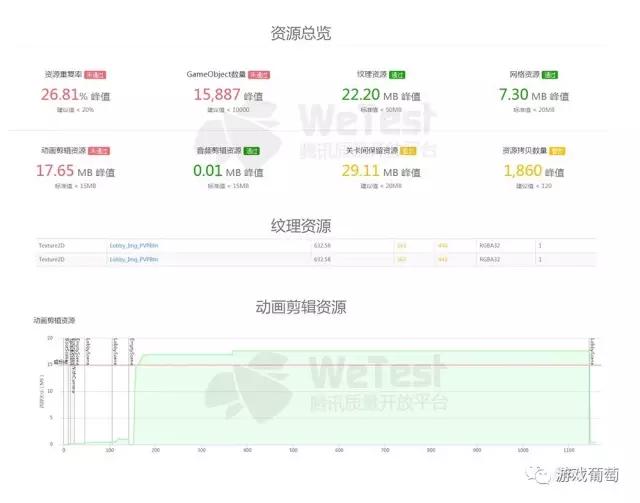 资源方面,《王者荣耀》整体性能优秀,但是我们仍然在资源重复率,GameObject数量,动画剪辑资源等方面提出了优化建议。