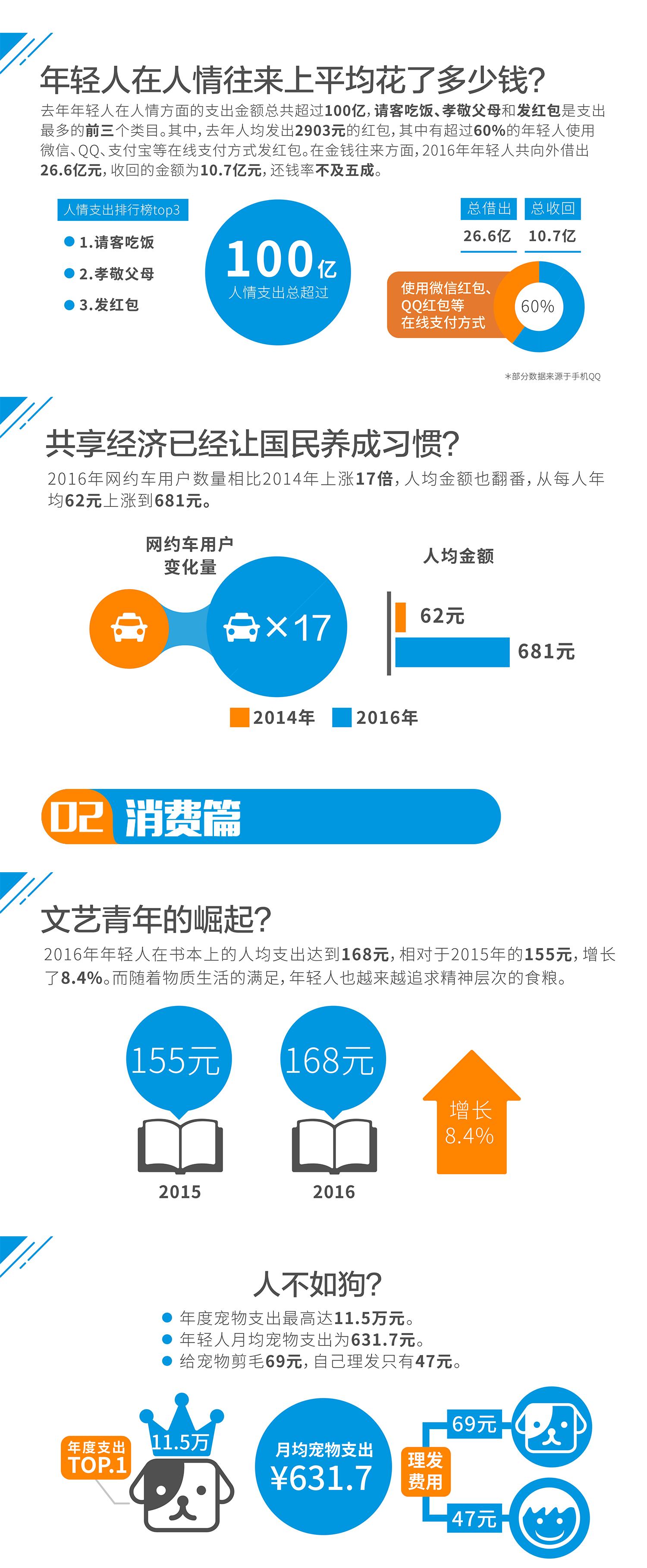 ★ 信息图内容来自易观联合记账理财应用随手记,以及光大银行、手机QQ、美团点评、苏宁易购、360手机助手、摩拜单车、腾讯动漫、唱吧、卡牛信用卡管家等知名品牌联合发布的《2017年轻人消费趋势数据分析》。