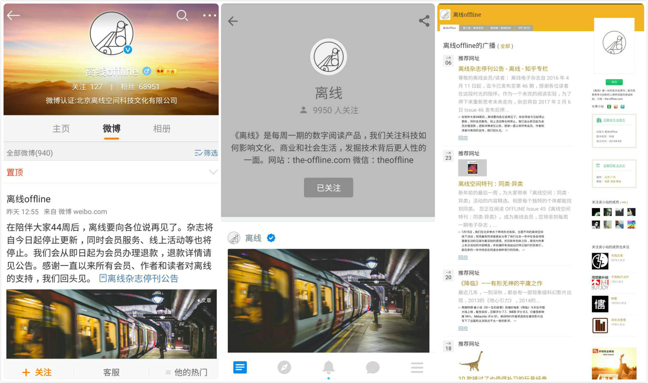 离线的微博、知乎、豆瓣小站,关注量都不大