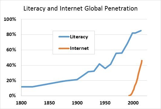 为什么会是这样?软件的边际成本(以及普通价格)是近乎于零的,于是即使是最穷的穷人也能使用。然而印刷书的边际成本从来没有那么接近于零过,因此学习字母所需的价格对于社会比较贫困的阶层来说一直是不可逾越的。好消息是,软件本身现在已经使书的边际成本为零,这反过来将有助于提高识字率,并助他们最终实现100%认读率。