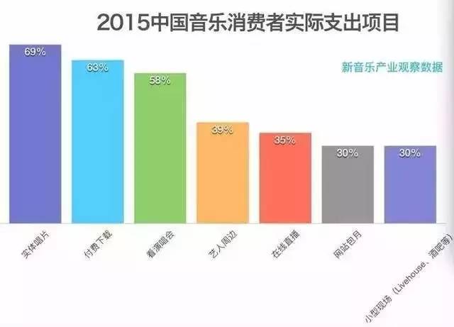上图数据来自新观的2015音乐产业报告(点这里查阅详情)。