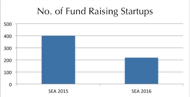 另一个显著的趋势是风投资金紧缩,尤其是种子轮和 Pre-A 轮融资。2016 年,融资交易数量较 2015 年相比明显下降。据 e27 内部数据显示,东南亚地区 2015 年初创企业融资交易数量为 400 笔,而 2016 年数量降至 216 笔。