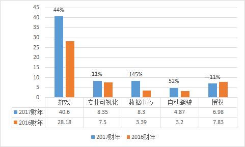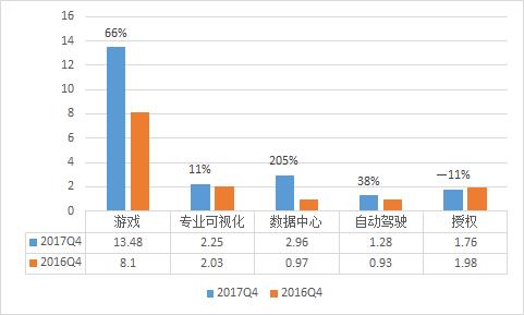 英伟达2017、2016财年4季度各部门业绩同期对比