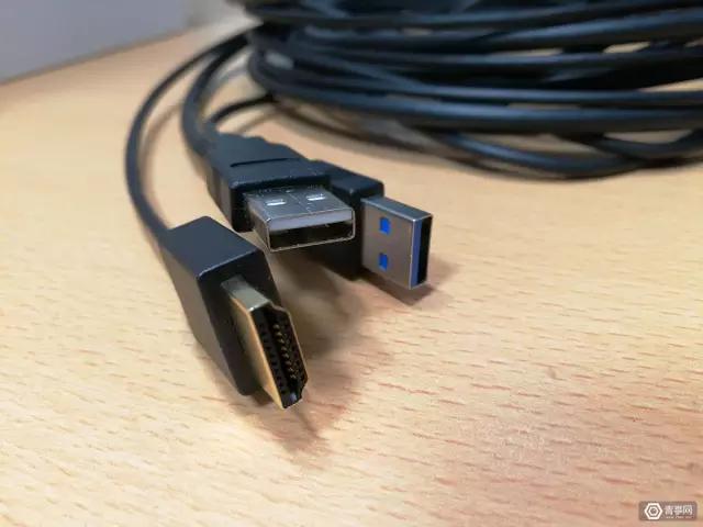 连接PC的数据线插头,有一个HDMI插头和2个USB插头。电脑上的USB接口需要升级到3.0版本以上。对于VR-ready的PC来说,一般都不成问题,但是这些数据线有一个问题。