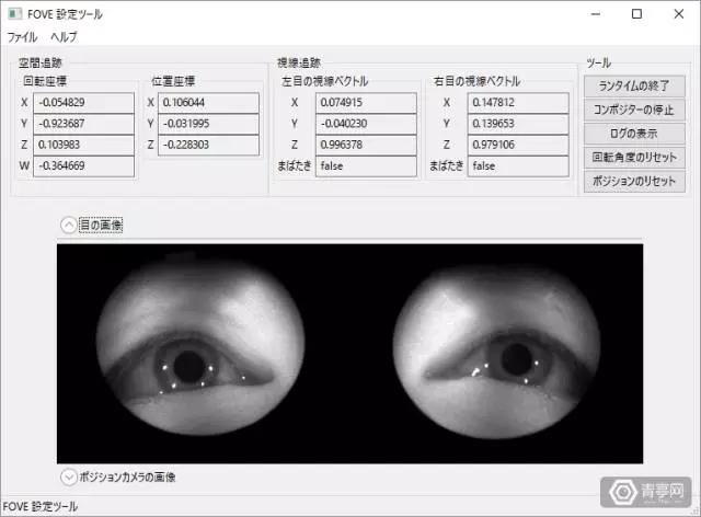 运行设置软件,可以看到眼部追踪是如何运行的(当然戴上头盔自己就看不见了)