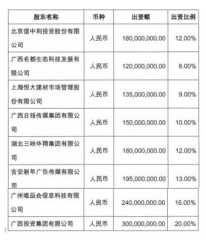 这8家公司分别为广西投资集团有限公司、广州唯品会信息科技有限公司、北京信中利投资股份有限公司、吉安新年广告传媒有限公司、湖北三峡华翔集团有限公司、广西日报传媒集团有限公司、上海恒大建材市场管理股份有限公司、广西名都生态科技发展有限公司。