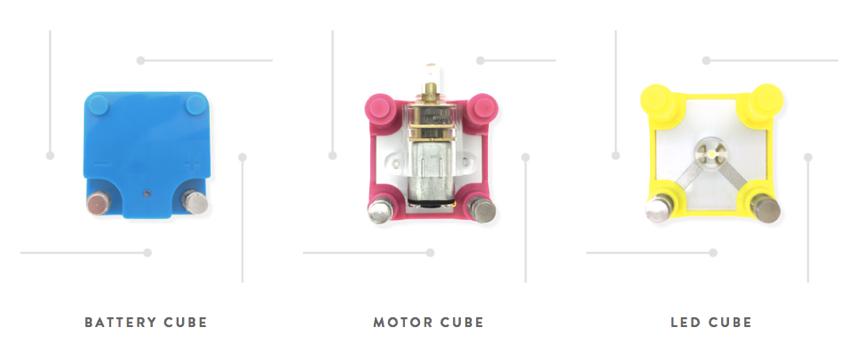 Circuit Cubes 由 STEM 教育家们以及第一代乐高玩具教练 Nate、John 共同设计,它不仅与乐高玩具兼容,也可以让孩子们使用任何材料来搭建积木,诸如如旧玩具和回收牛奶盒。值得一提的是,Circuit Cubes 同时教授孩子们电子学的基本原理,其独特的设计,让孩子们在打开 LED、电源马达,或者激活开关的同时,就能透视玩具的内部。