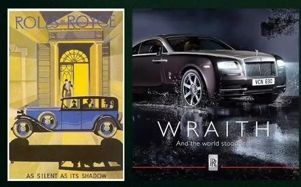 1907年劳斯莱斯的广告,当时这款车是质量最好的车,广告强调汽车非常安静,坐在车里你听不到外界嘈杂的声音。2016年劳斯莱斯汽车的广告向你传达的仍然是这种宁静的感觉。100多年来,无论设计如何变动,沟通方法如何创新,劳斯莱斯在品牌的表达过程中保持了一致并具有延续性。