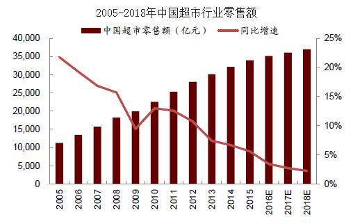 从超市行业的发展情况来看,2015年国内超市零售额达3.4万亿元,同比增长5.6%,但近年来增速呈现明显的下滑趋势。按具体的业态来看,表超、大卖场和折扣店的增速都保持在个位数,而便利店的增速保持在双位数。另据相关报告估计,2016 年中国便利店市场规模可能达到 1000 亿元,增速在 15%左右。