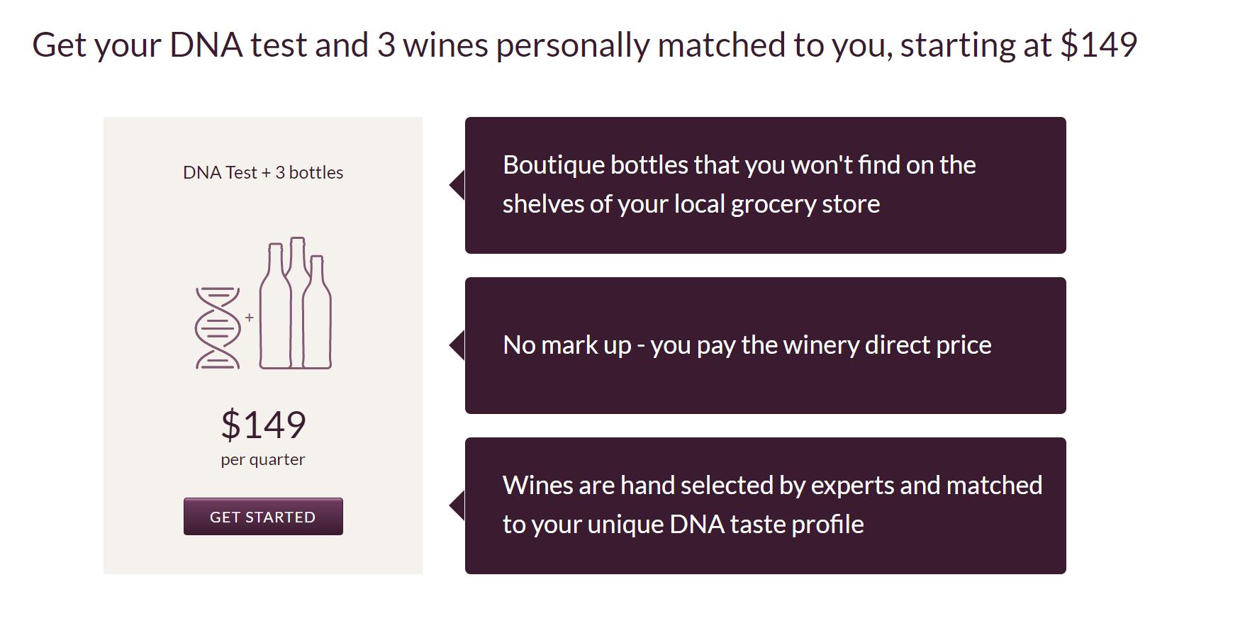 另一个合作伙伴是Vinome。这是一家葡萄酒俱乐部,只要用户每季度花费149美元,它就会根据Helix提供的DNA检测结果为你专门选择三瓶符合你口味与喜好的葡萄酒……