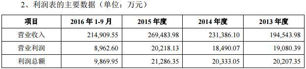从公司的主要财务数据来看,目前公司的经营状况较为稳定。2013年度、2014年度、2015年度、2016年1—9月,公司的营收分别约为19.45亿元、23.14亿元、26.95亿元和21.49亿元,而归属于母公司股东的净利润分别约为1.63亿元、1.57亿元、1.76亿元和0.77亿元。