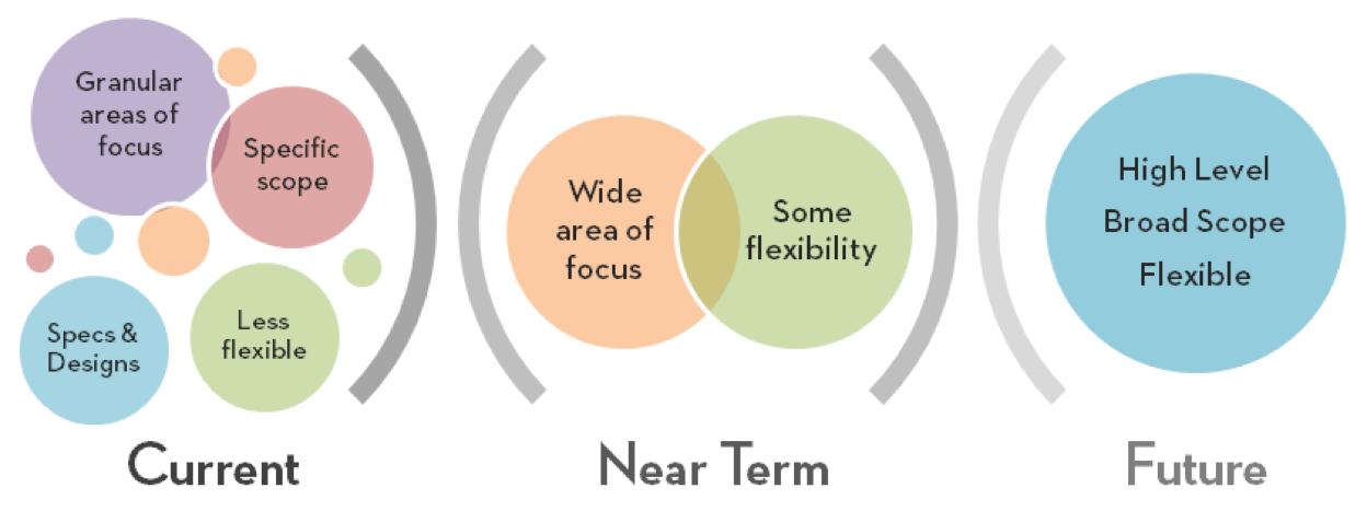 目前:特定范围、关注的颗粒度领域、规范与设计、不那么灵活
