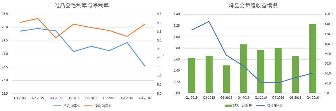 其中,季度运营利润较上年同期增长17.1%达9.389亿元,季度毛利润同比增长33.4%,至44.7亿元人民币;归属于唯品会股东的净利润同比增长30.9%至9.703亿元人民币;活跃用户总数同比增长39%达到2750万人,第四季度总订单量达到8200万单,同比增长26%。至此,唯品会已实现连续17个季度盈利。
