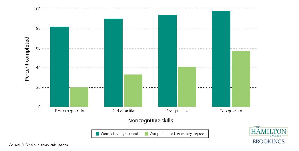 最后这张图表明具备前25%非认知技能的人几乎都能完成高中学业,而且超过半数拿到了学位。