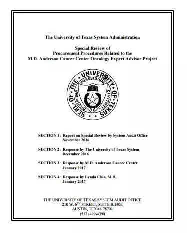 The University of Texas System Administration: Special Review of Procurement Procedures Related to the M.D. Anderson Cancer Center Oncology Expert Advisor Project