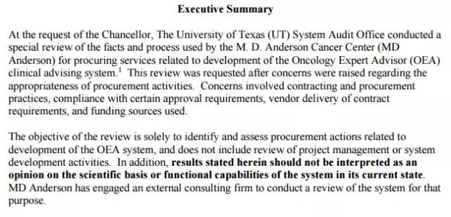 德克萨斯大学审计员提交的一份报告严厉地指出,与 IBM Watson的合作花费了MD Anderson 6200多万美元,却仍未达预期目标。