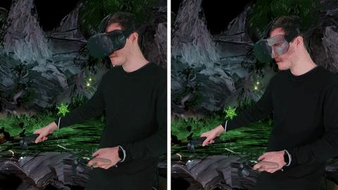 两者对比一下,效果会更加明显。下图是艺术家Steve Teeple在VR创意应用中《Tilt Brush》的对比动图。